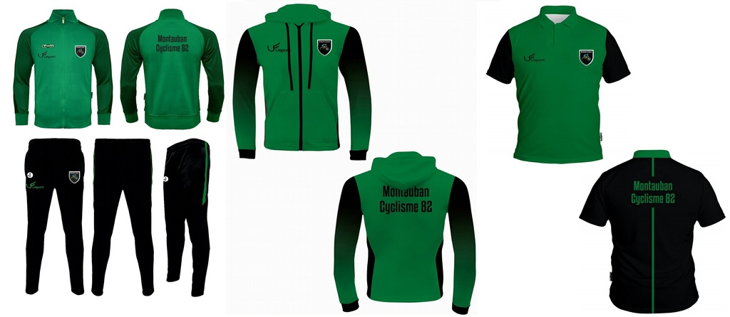 Ensemble 3 pièces survet+polo, sans capuche pour les teams route et avec capuche pour VTT, Trial, autres publics