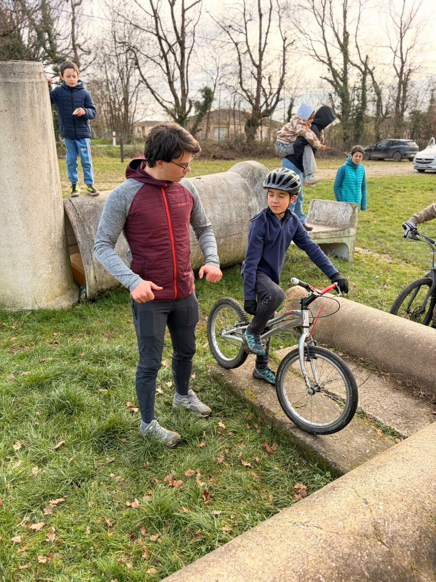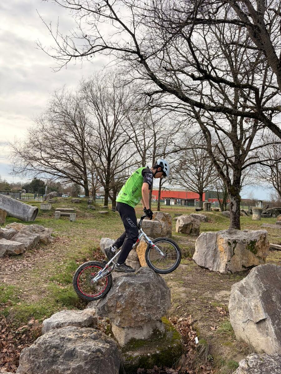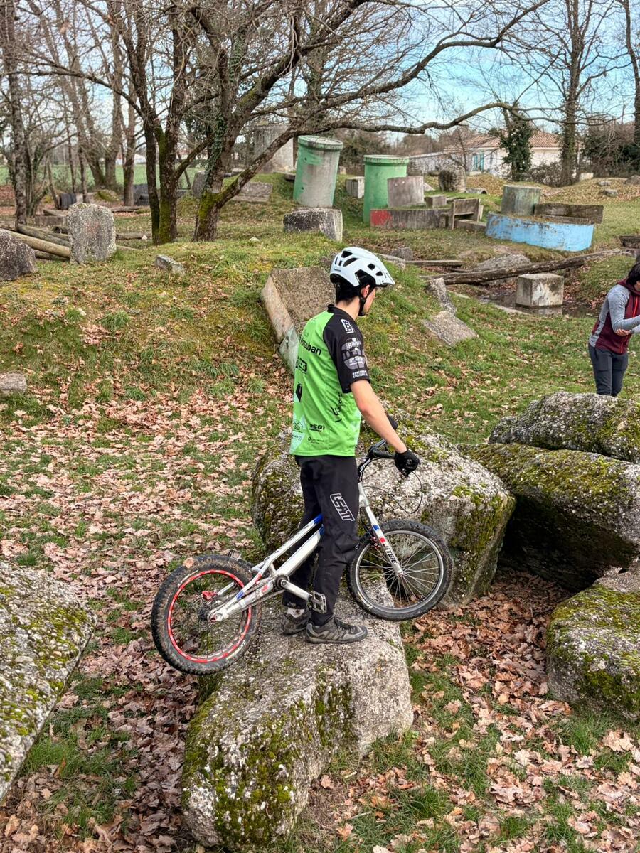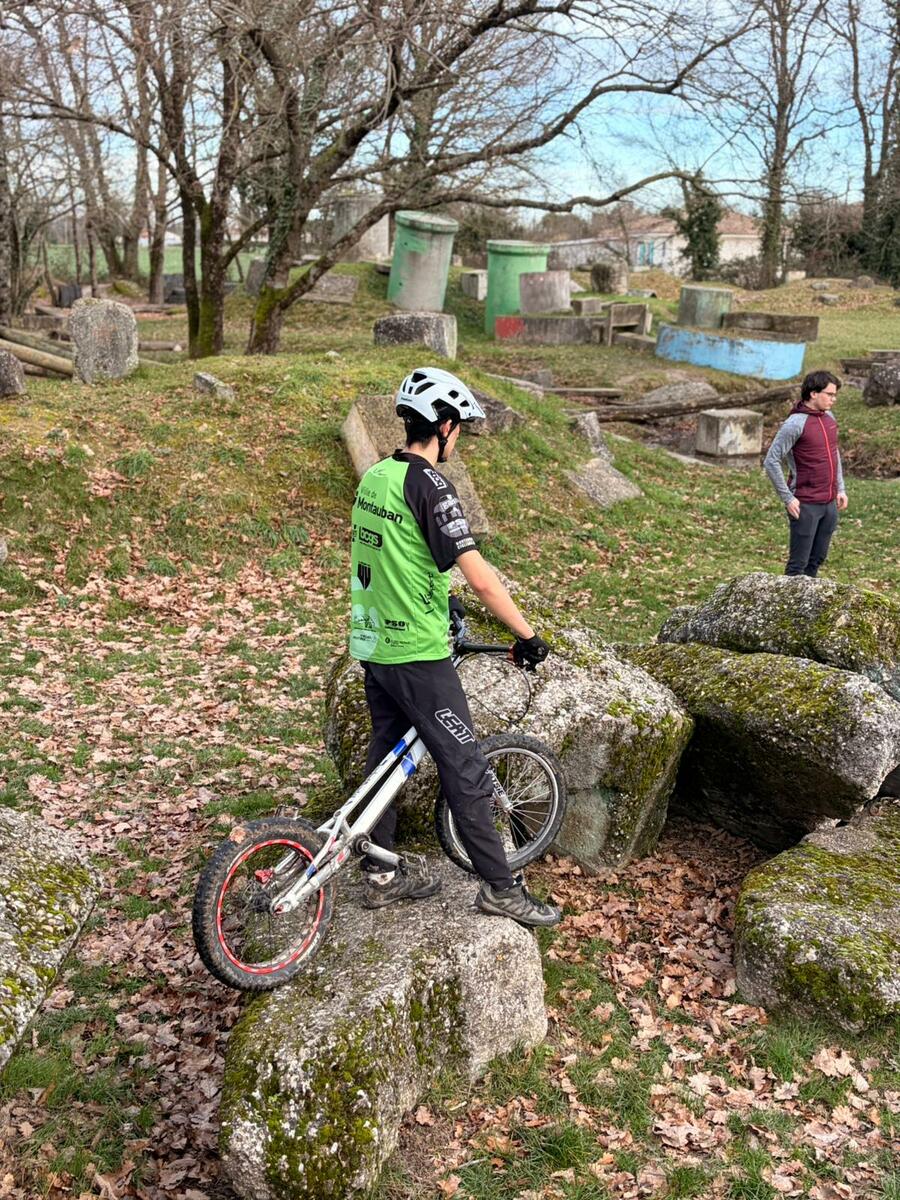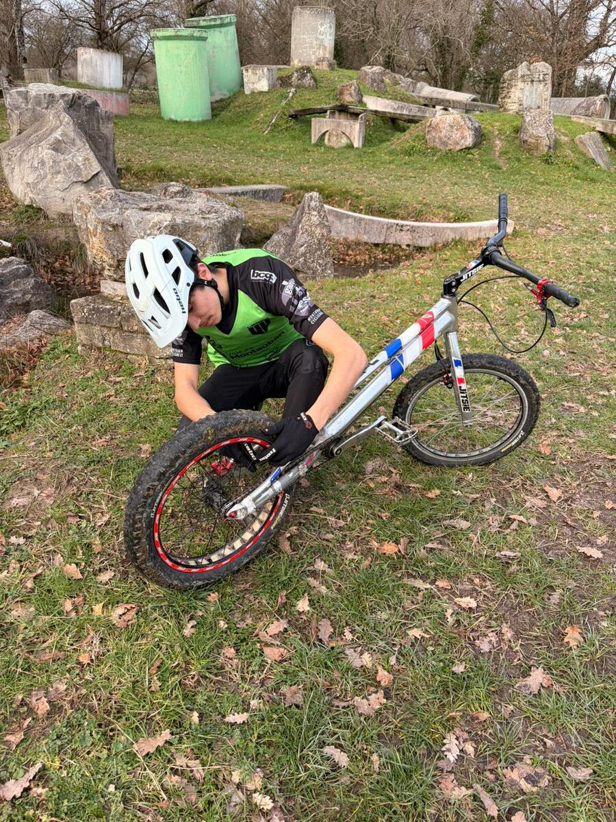 Comme tous les mercredis, la section Trial s'est retrouvée de 14h00 à 15h30 pour son entraînement hebdomadaire. Sous l'œil expert de Matéo, le groupe, composé en majorité de jeunes pilotes motivés, s'est concentré sur la technique et le franchissement. Une fois l'échauffement terminé, la séance s'est focalisée sur un exercice précis : les descentes latérales. Pour que chacun prenne confiance, ils ont débuté sur des palettes avant de s'attaquer progressivement à des obstacles plus difficiles.