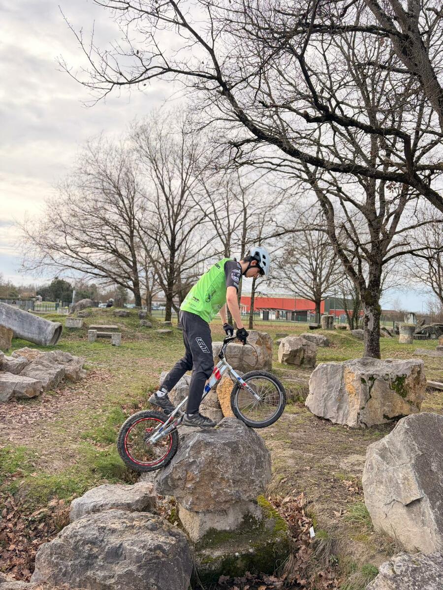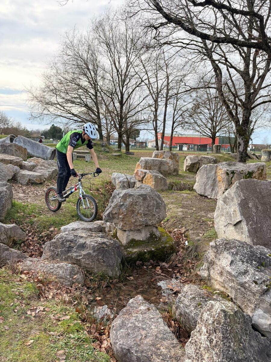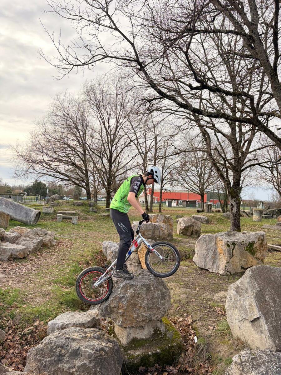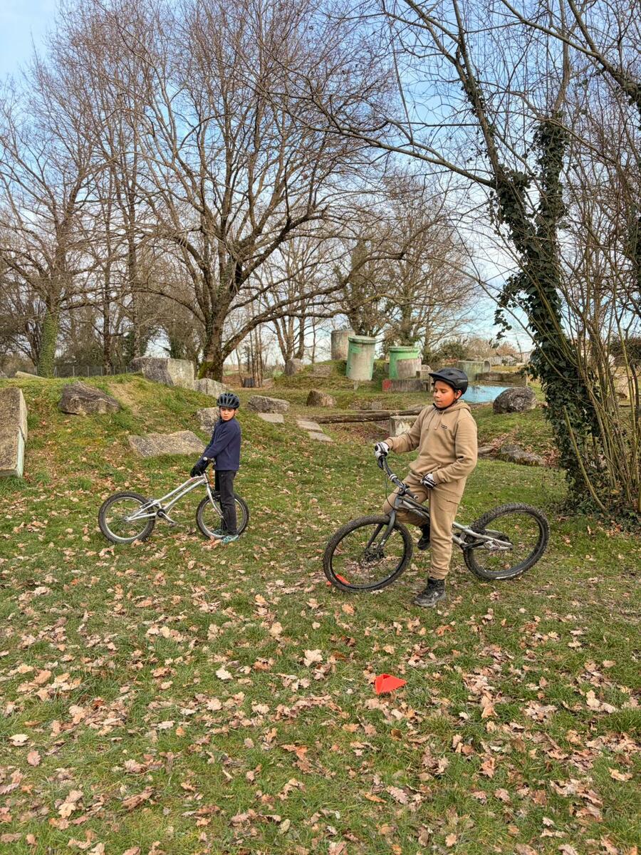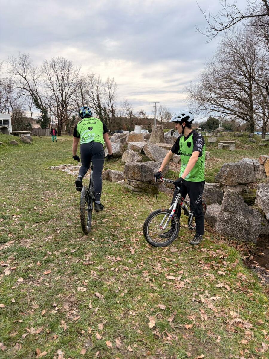 Comme tous les mercredis, la section Trial s'est retrouvée de 14h00 à 15h30 pour son entraînement hebdomadaire. Sous l'œil expert de Matéo, le groupe, composé en majorité de jeunes pilotes motivés, s'est concentré sur la technique et le franchissement. Une fois l'échauffement terminé, la séance s'est focalisée sur un exercice précis : les descentes latérales. Pour que chacun prenne confiance, ils ont débuté sur des palettes avant de s'attaquer progressivement à des obstacles plus difficiles.