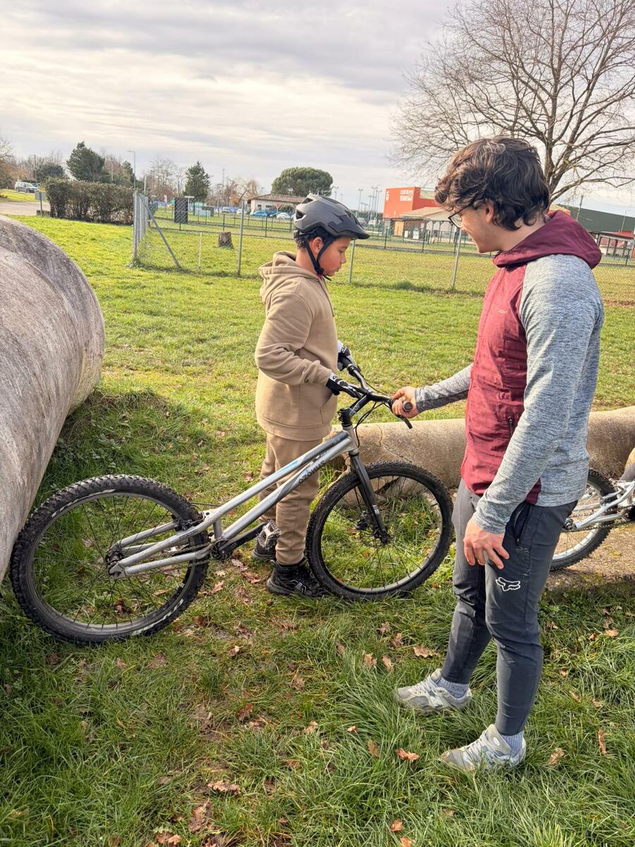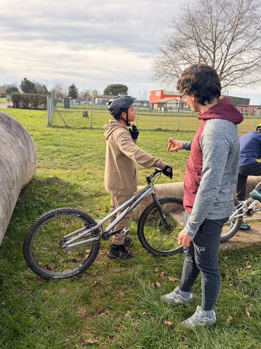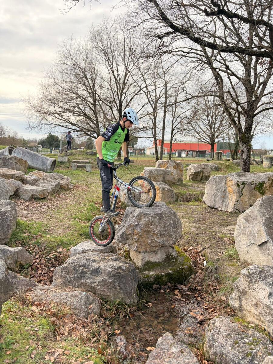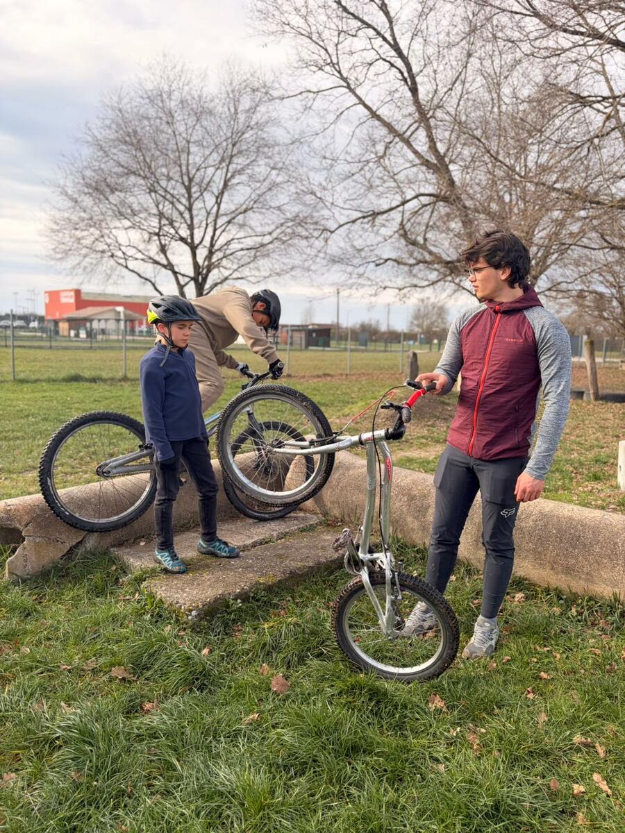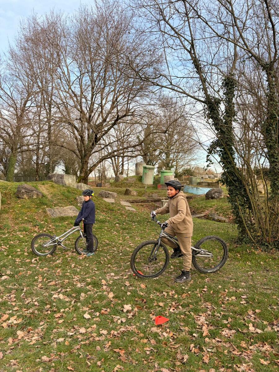 Comme tous les mercredis, la section Trial s'est retrouvée de 14h00 à 15h30 pour son entraînement hebdomadaire. Sous l'œil expert de Matéo, le groupe, composé en majorité de jeunes pilotes motivés, s'est concentré sur la technique et le franchissement. Une fois l'échauffement terminé, la séance s'est focalisée sur un exercice précis : les descentes latérales. Pour que chacun prenne confiance, ils ont débuté sur des palettes avant de s'attaquer progressivement à des obstacles plus difficiles.